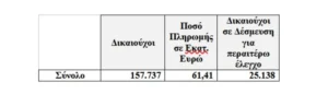 Επομένως, λαμβάνοντας υπόψη και την πληρωμή ύψους 1,6 εκατ. ευρώ που έγινε στις 03.10.2025, συνολικά από 01.09.2025 έχουν πληρωθεί 153 εκατ. ευρώ.