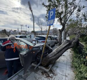 Ένα αυτοκίνητο εξετράπη της πορείας του το μεσημέρι της Τετάρτης, στο κέντρο των Χανίων, προκαλώντας ζημιές σε δέντρο και πινακίδα, στην οδό Ελευθερίου Βενιζέλου, στη συμβολή με την οδό Κύπρου, κοντά στο Εθνικό Στάδιο της πόλης.