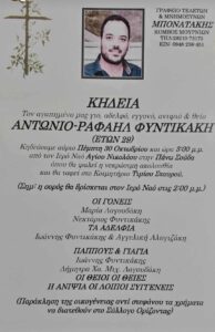 Βαθιά θλίψη έχει σκορπίσει στον κόσμο της Κρητικής μουσικής η είδηση του πρόωρου χαμού του Αντώνη Ραφαήλ Φυντικάκη, που έφυγε από τη ζωή σε ηλικία μόλις 29 ετών, ύστερα από γενναία μάχη που έδωσε με την οξεία μυελογενή λευχαιμία.