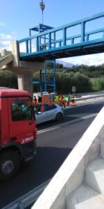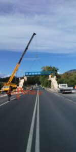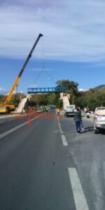 Τα πλάνα αναδεικνύουν τη λεπτομερή προετοιμασία, τη στιγμή που ο γερανός ανυψώνει τη μεταλλική κατασκευή αλλά και την τελική τοποθέτηση στο σημείο, όπου πλέον δεσπόζει η νέα πεζογέφυρα.