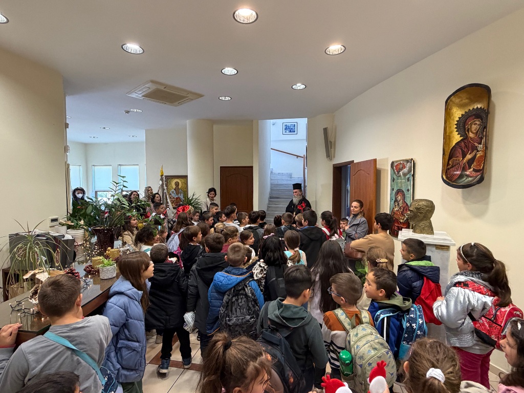 Παράλληλα, προέτρεψε τους μαθητές να συμμετάσχουν στη λατρευτική ζωή της Εκκλησίας κατά το Άγιο Δωδεκαήμερο, ενώ προσέφερε σε όλους γλυκίσματα και συμβολικά δωρήματα. Στους εκπαιδευτικούς συνοδούς δόθηκε το Ημερολόγιο-Εορτολόγιο της Ιεράς Μητροπόλεως, συνοδευόμενο από ευχές για «αληθινά, χαρούμενα, ευλογημένα και γεμάτα αγάπη Χριστούγεννα».