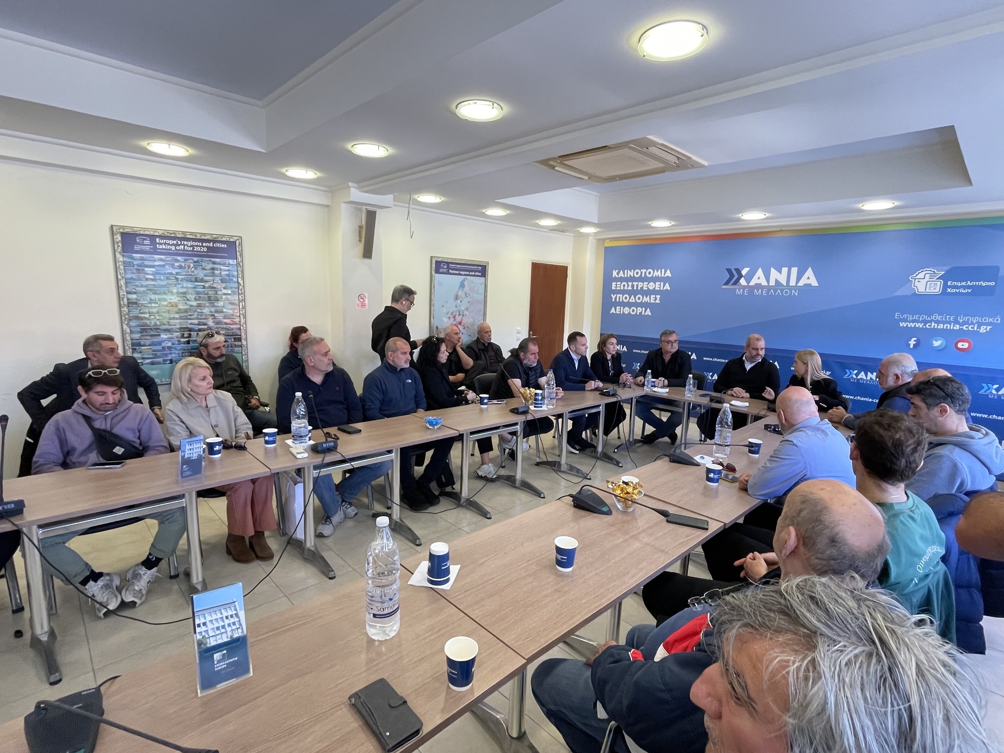 Σε κλίμα συντονισμού και κοινής διεκδίκησης πραγματοποιήθηκε στο Επιμελητήριο Χανίων σύσκεψη φορέων με επίκεντρο την επόμενη ημέρα της Δημοτικής Αγοράς, όπου επιβεβαιώθηκε η εξασφάλιση οικονομικής ενίσχυσης ύψους 30.000 ευρώ για κάθε επιχείρηση που θα επανεγκατασταθεί στον ανακαινισμένο χώρο.