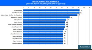 Από τους 60 δημάρχους που αξιολογήθηκαν στην έρευνα οι 19 βρίσκονται κάτω από την (χαμηλή) «βάση» του 29% (σ.σ. μέσος όρος ικανοποίησης των πολιτών από τους δημάρχους), εφτά ακριβώς στο όριο και 34 πάνω από αυτό.