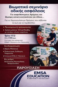 Η παρουσίαση πραγματοποιείται από την EMSA EDUCATION – In Urban Mobility and Road Safety, η οποία εξειδικεύεται στην εκπαίδευση και ενημέρωση σε ζητήματα αστικής κινητικότητας και οδικής ασφάλειας.