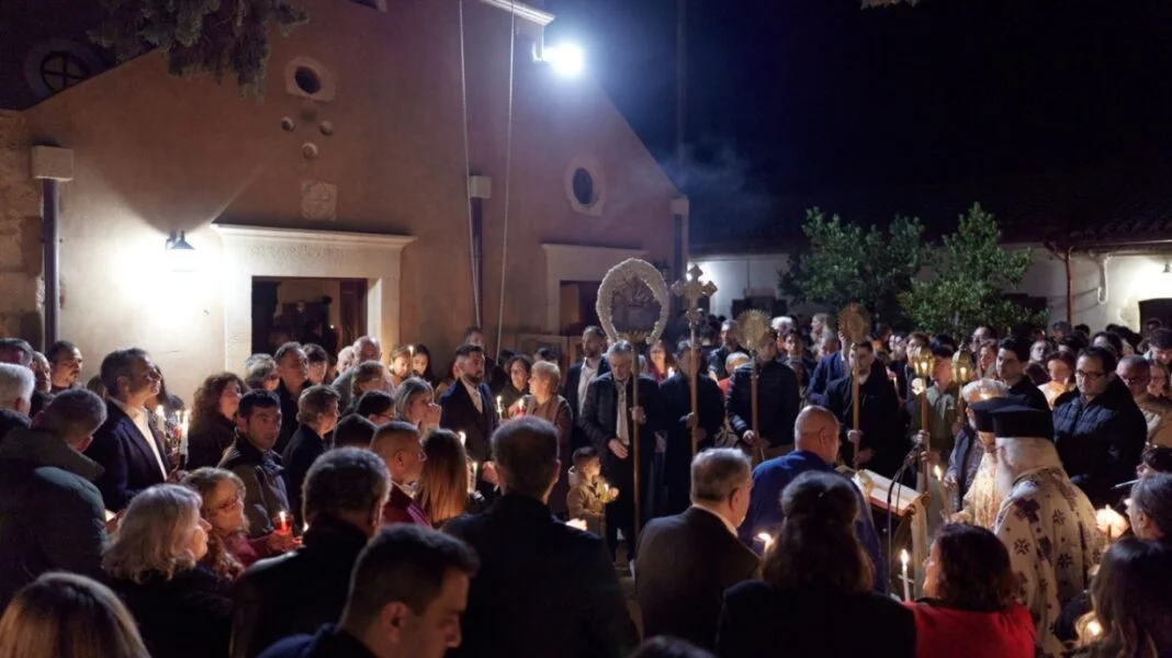 Το βράδυ της Ανάστασης, ο Πρωθυπουργός παρακολούθησε την Ακολουθία στην Ιερά Μονή Αγίου Ιωάννη Προδρόμου, στις Κορακιές Ακρωτηρίου, σε ένα περιβάλλον με έντονο θρησκευτικό χαρακτήρα και βαθιά τοπική σημασία.