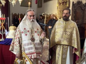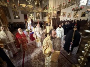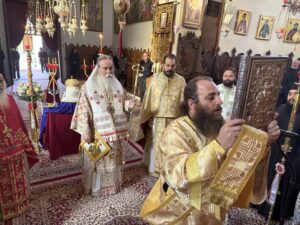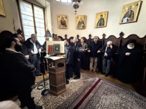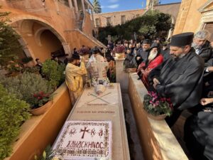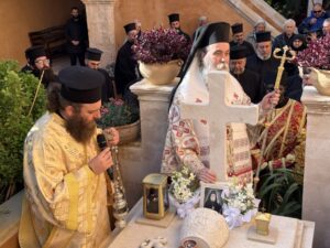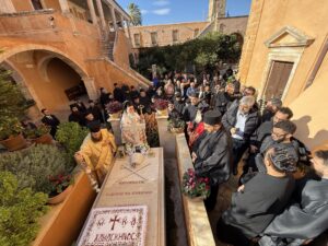 Μετά το μνημόσυνο που τελέστηκε στο Καθολικό της Μονής ακολούθησε η τέλεση Τρισαγίου επί του τάφου του αοίδιμου Ιεράρχη.