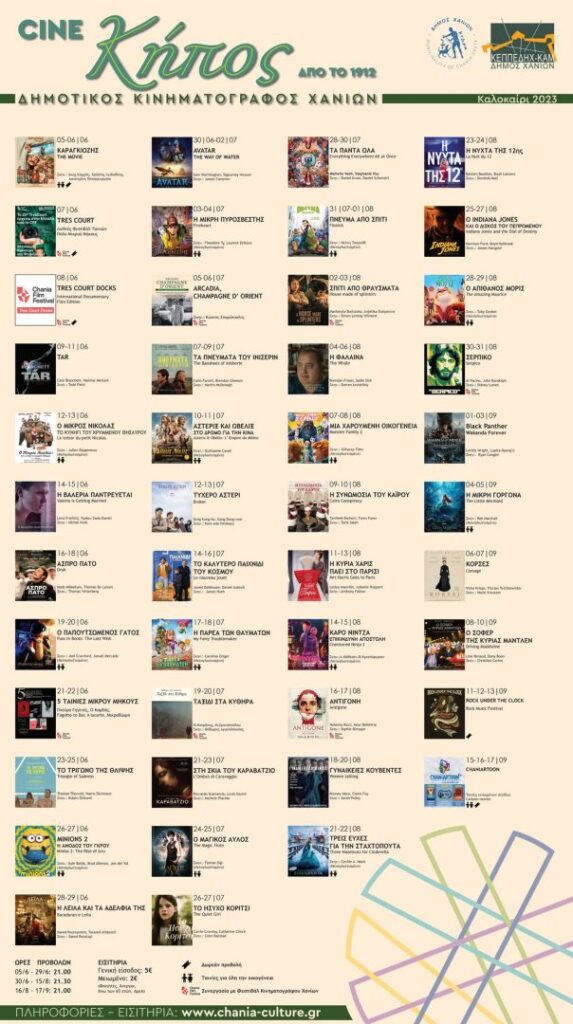 Αναλυτικές πληροφορίες για τις ταινίες, το πρόγραμμα και τις προβολές βρείτε εδώ: www.chania-culture.gr