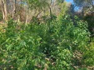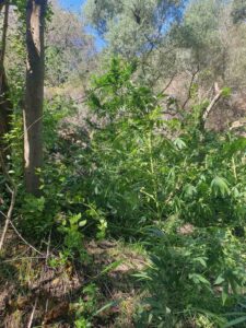 Κατά τη διάρκεια της επιχείρησης σε δύσβατη περιοχή του εν λόγω Δήμου εντοπίστηκε ειδικά διαμορφωμένος χώρος στον οποίο καλλιεργούνταν επιμελώς δενδρύλλια κάνναβης και κατελήφθησαν οι δύο αλλοδαποί στο χώρο της φυτείας και συνελήφθησαν.