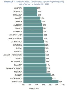 Ενδεικτικά, στους Δήμους Ανωγείων και Σφακίων, πάνω από το 50% των φορολογικών δηλώσεων παραμένει σταθερά κάτω των 5.000 ευρώ, γεγονός που αναδεικνύει την ανθεκτικότητα της εισοδηματικής φτώχειας σε αυτές τις περιοχές. Παρατηρούμε ότι υπάρχουν έντονες ανισότητες μεταξύ των Δήμων της Ανατολικής και της Δυτικής Κρήτης.