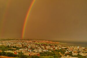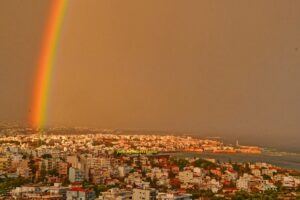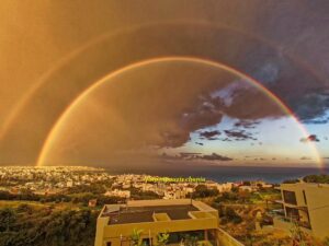 Στο τελευταίο ξημέρωμα του Νοεμβρίου, ο ουρανός των Χανίων χάρισε μια εικόνα σπάνιας ομορφιάς: ένα ολοζώντανο ουράνιο τόξο που έκανε την εμφάνισή του την ώρα που η μέρα άρχισε δειλά να φωτίζει την πόλη.