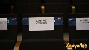 Απών από την παρουσίαση ο Αντώνης Σαμαράς, χειραψία Μητσοτάκη- Καραμανλή