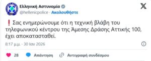 Hashtags: #ΆμεσηΔράση #100 #112 #ΕΛΑΣ #ΤεχνικόΠρόβλημα #ΈκτακτηΑνάγκη #Επικαιρότητα