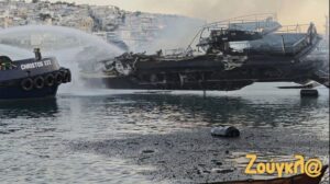 Αυτόπτης μάρτυρας σημείωσε στο MEGA πως η φωτιά ξεκίνησε από ένα ξύλινο τουριστικό σκάφος και επεκτάθηκε σε 3 πολυτελή γιοτ στην Μαρίνα Ζέας στον Πειραιά.
