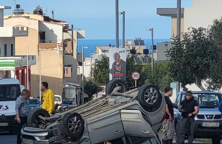 Όπως φαίνεται και στις φωτογραφίες του CRETA24, ένα αυτοκίνητο «τούμπαρε» με αποτέλεσμα στο σημείο να προκληθεί μεγάλη αναστάτωση.