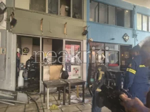 Από την ισχυρή έκρηξη προκλήθηκε σπάσιμο τζαμιών και άλλες υλικές ζημιές, ενώ οι δυνάμεις της Πυροσβεστικής Υπηρεσίας παραμένουν στο σημείο για έλεγχο και ασφάλιση του χώρου.