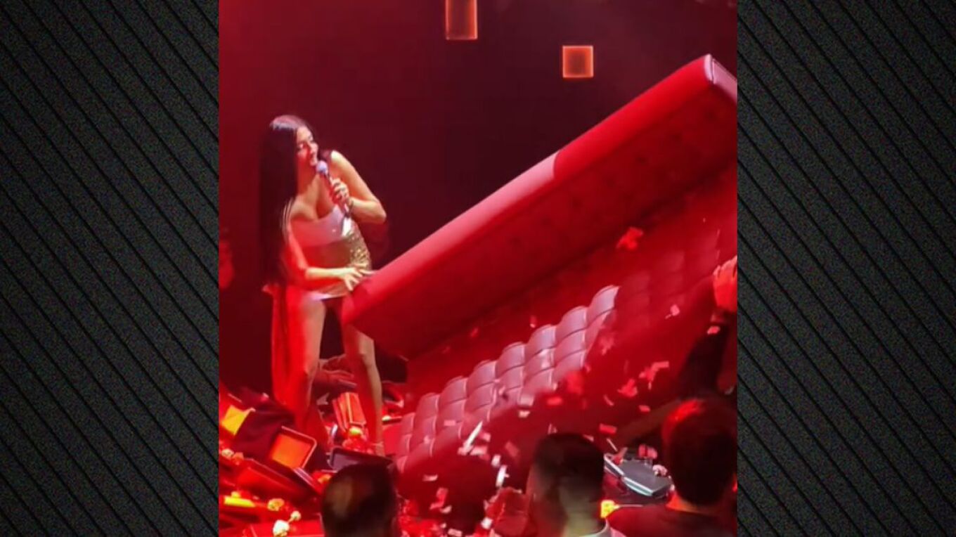 Μέσα από βίντεο που δημοσιεύτηκε στο TikTok, καταγράφθηκε η στιγμή που ενώ η τραγουδίστρια ερμήνευε το «Κανείς εδώ δεν τραγουδά», ένα πρόσωπο που διασκέδαζε στο μαγαζί της Θεσσαλονίκης, έριξε καναπέ στη σκηνή.