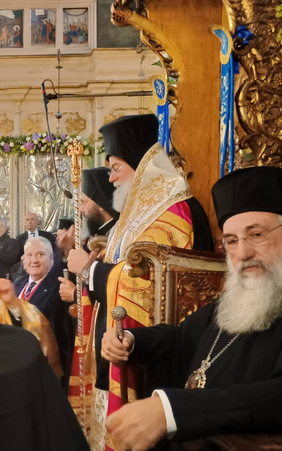 Υπενθυμίζεται ότι, λόγω των δυσμενών καιρικών συνθηκών, το αρχικό σημείο της επίσημης υποδοχής μεταφέρθηκε από την Πλατεία της Δημοτικής Αγοράς στον Μητροπολιτικό Ναό, όπου και πραγματοποιήθηκε το σύνολο των εκδηλώσεων.