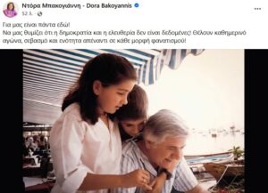 Συγκινητική είναι και η ανάρτηση της βουλευτού Χανίων και τέως συζύγου του αείμνηστου πολιτικού, Ντόρας Μπακογιάννη: