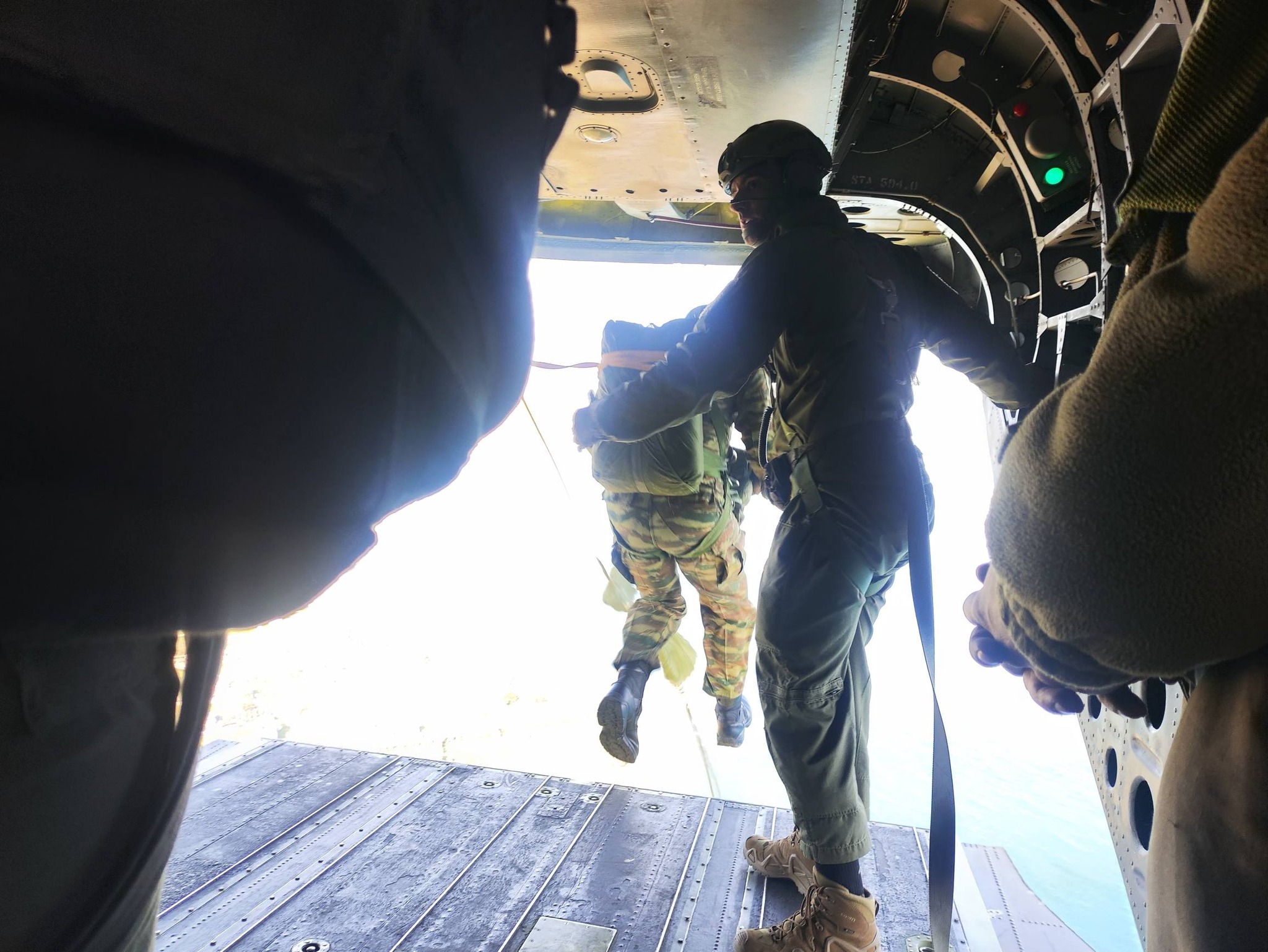 Στο πλαίσιο της εκπαιδευτικής δραστηριότητας, στελέχη των ειδικών δυνάμεων πραγματοποιούν άλματα συντήρησης από ελικόπτερο Boeing CH-47 Chinook, από ύψος περίπου 1.200 ποδιών. Η άσκηση εντάσσεται στο πρόγραμμα διατήρησης της επιχειρησιακής ετοιμότητας και της εκπαίδευσης του προσωπικού.