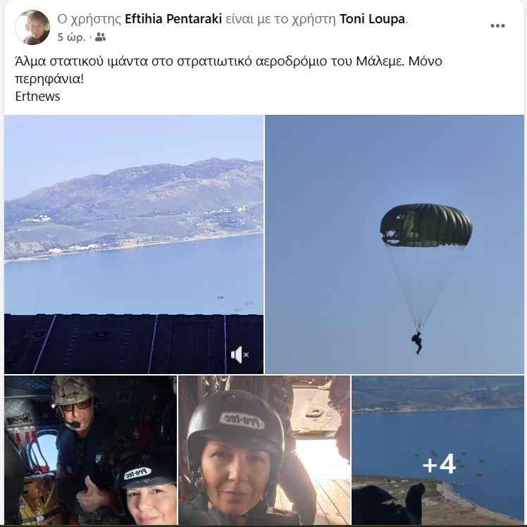 Σε εξέλιξη βρίσκεται προγραμματισμένη άσκηση αλεξιπτωτιστών του Ελληνικός Στρατός στο ιστορικό αεροδρόμιο του Μάλεμε, στα Χανιά.