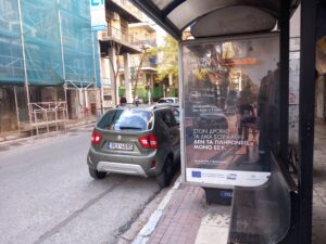 Αφίσες που προτρέπουν στην ασφαλή οδήγηση τοποθετημένες σε παράνομα σύμφωνα με τον ΚΟΚ διαφημιστικά πλαίσια, κάθετα στο ρεύμα κυκλοφορίας σε δρόμους με όριο ταχύτητος 50 km/h. Διαφημιστικά πλαίσια που με βάση όχι μόνο τον ΚΟΚ αλλά και τη Σύμβαση της Βιέννης και σχετικές καταδικαστικές αποφάσεις του ΣτΕ προκαλούν απόσπαση της προσοχής των οδηγών με τις οδυνηρές συνέπειες που τόσες οικογένειες έχουν βιώσει στη χώρα μας. Ενδεικτικές οι φωτογραφίες που παραθέτουμε από την Λ. Αλεξάνδρας και την οδού Ιπποκράτους, επικράτεια του Δήμου Αθηναίων.