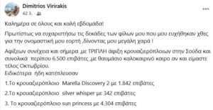Hashtags: #Χανιά #Σούδα #Κρουαζιερόπλοια #Τουρισμός #Κρήτη #CruiseNews #SunPrincess #MarellaDiscovery2 #SilverWhisper #TravelGreece