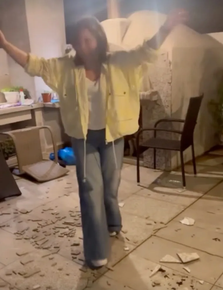 Στο βίντεο που μοιράστηκε μαζί μας, η Μαρίνα Ασλάνογλου φαίνεται να απολαμβάνει κάθε στιγμή, ενώ ο γύρω χώρος είναι γεμάτος από θρύψαλα… οικοδομικών υλικών.